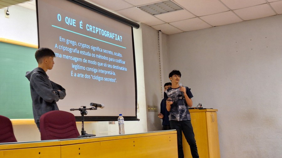 Projetos de Verão com professores universitários, explorando matemática e ciências e apresentando os resultados na Unicamp.